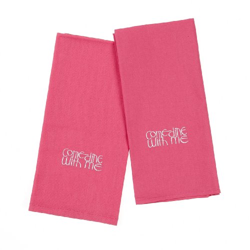 Mad About Cooking Come Dine with Me Embroidered Tea Towels, Pink, Pack of 2