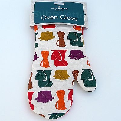 The Silhouette single oven glove from Royal Stafford feature a colourful contemporary design of kitchen utensils which matches in with the storage jars and other kitchen textiles for a fresh new kitchen look. The oven mitts sold singly are made from 100% cotton and measure 35 x 18.5cms.