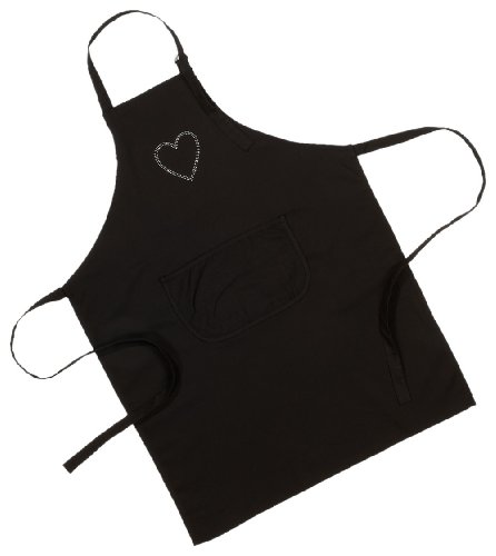 Mad About Cooking Crystal Heart Rhinestone Apron, Black