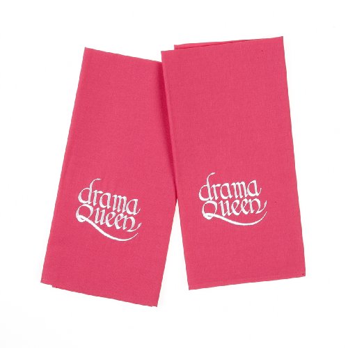 Mad About Cooking Drama Queen Embroidered Tea Towels, Pink, Pack of 2