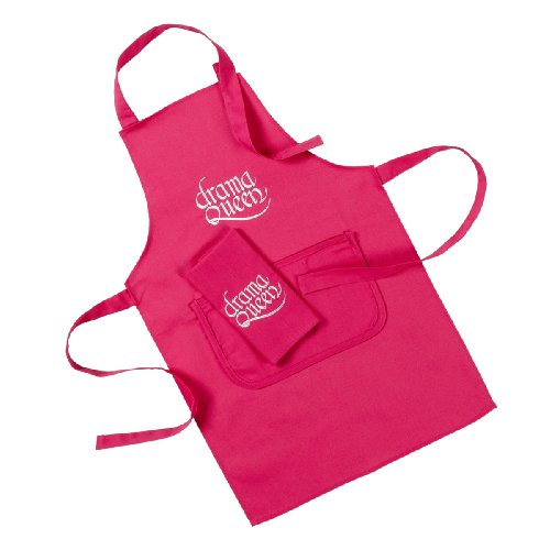Mad About Cooking Drama Queen Embroidered Junior Apron and Tea Towel Set, Pink