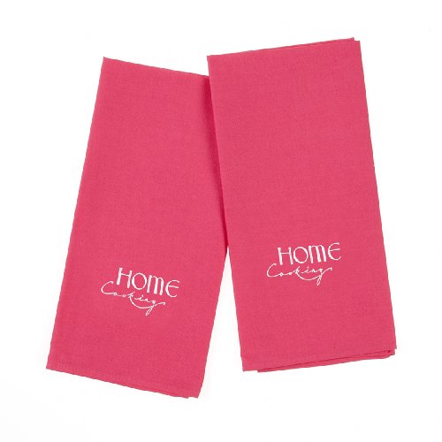 Mad About Cooking Home Cooking Embroidered Tea Towels, Pink, Pack of 2