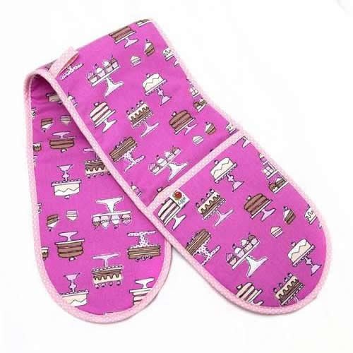Beautifully made in Norwich, England100% Cotton outer with polyester liningThickly paddedGenerous size gloves for safe & easy useMachine washableMatching Cakes design Kitchen Apron availableComplies with BS 6526 : 199892 x 19cms ( 36" x 7 1/2" )